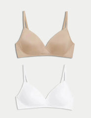 Specially designed to fit her growing shape, this style makes an ideal first bra. Handy pack of two, with comfy and supportive non-wired cups. Lightly padded to help create a smooth look under clothes. M&S Collection: versatile styles in modern shapes with unique and playful details.